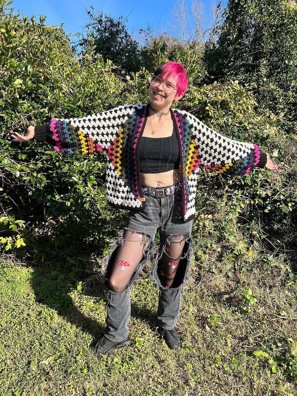 In our realm, you have the opportunity to express yourself though our custom hexagon cardigans. You can choose from 0-3 months-adult sizes.